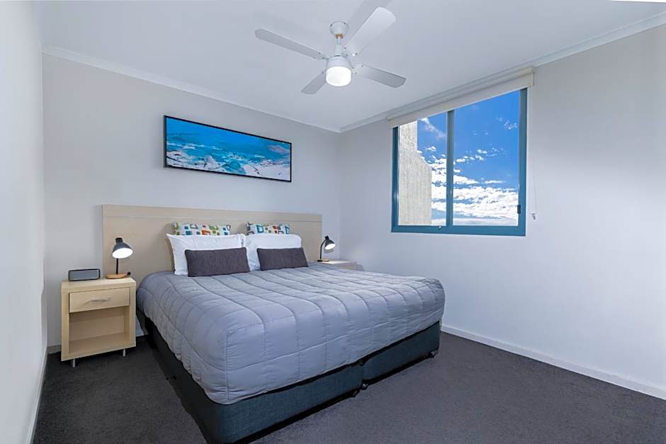 This spacious apartment features a private balcony with stunning views of Port Stephens. Offers a kitchenette and a large living area. This apartment is located next to the elevator.