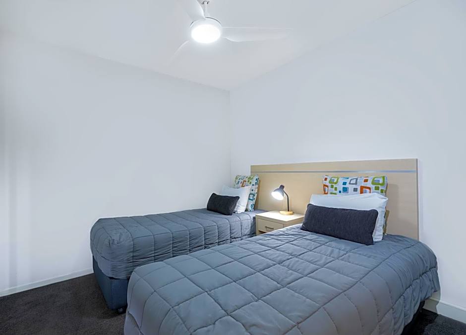 This two-bedroom apartment features a renovated kitchenette and bathroom and a private balcony with views facing towards the tennis courts or golf club. The self-contained apartment includes 2 separate bedrooms and an open living area. The bathroom features a corner spa bath.